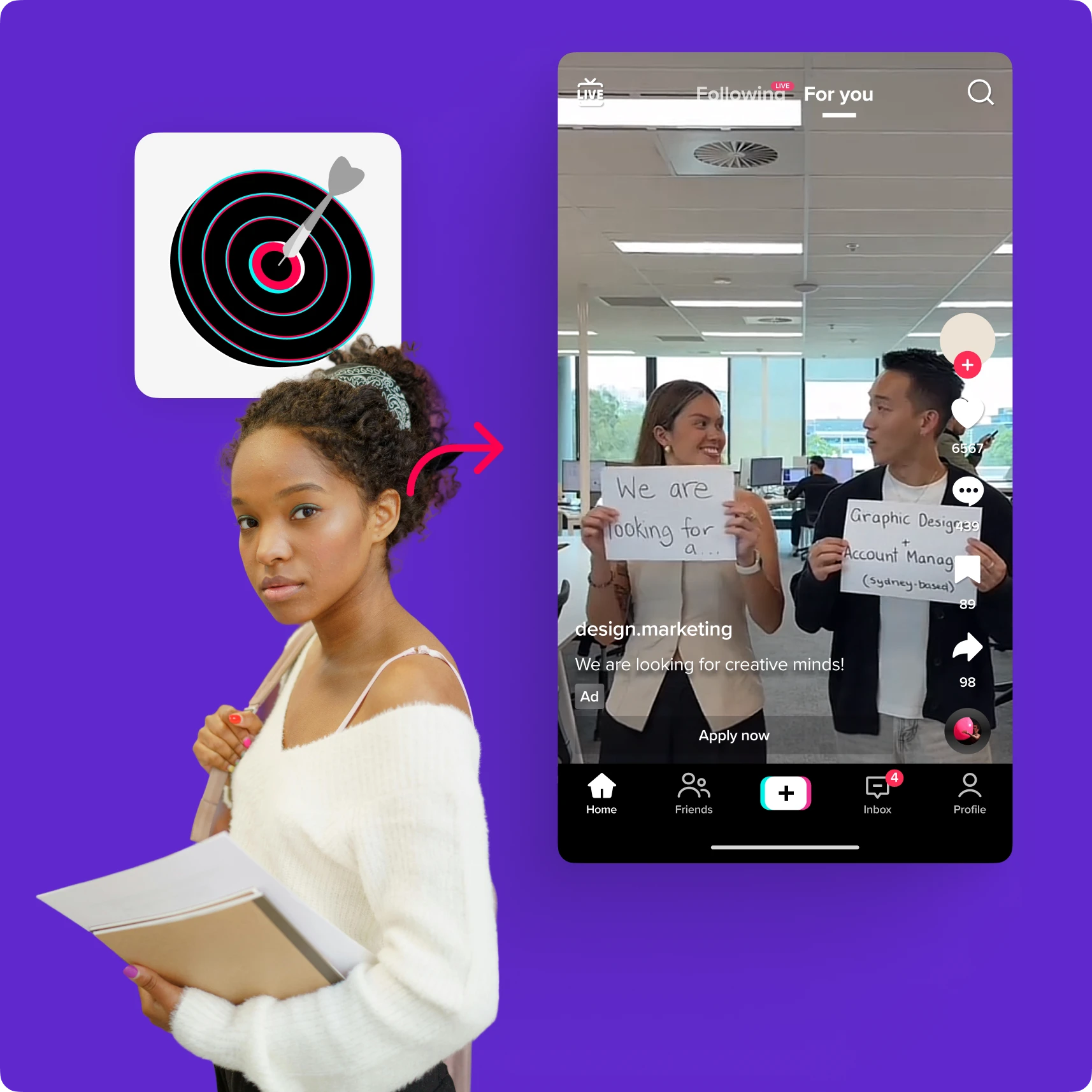 Ads give you the opportunity to present your recruiting message to a broad, new target group. This means you can also reach people who don't have a TikTok account. In addition, ads enable precise performance measurement thanks to metrics such as views, engagements and link clicks.